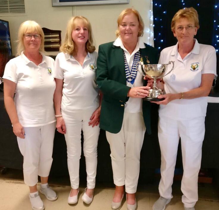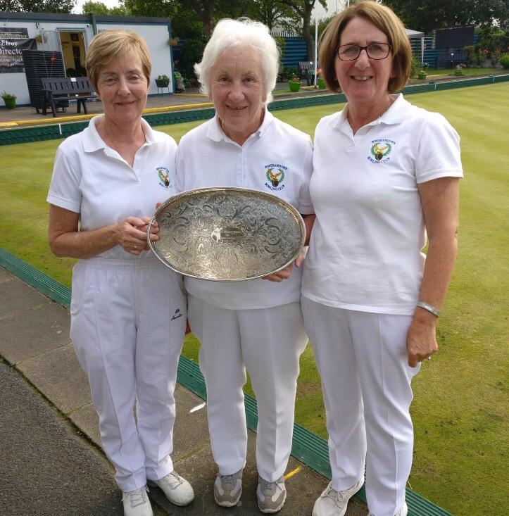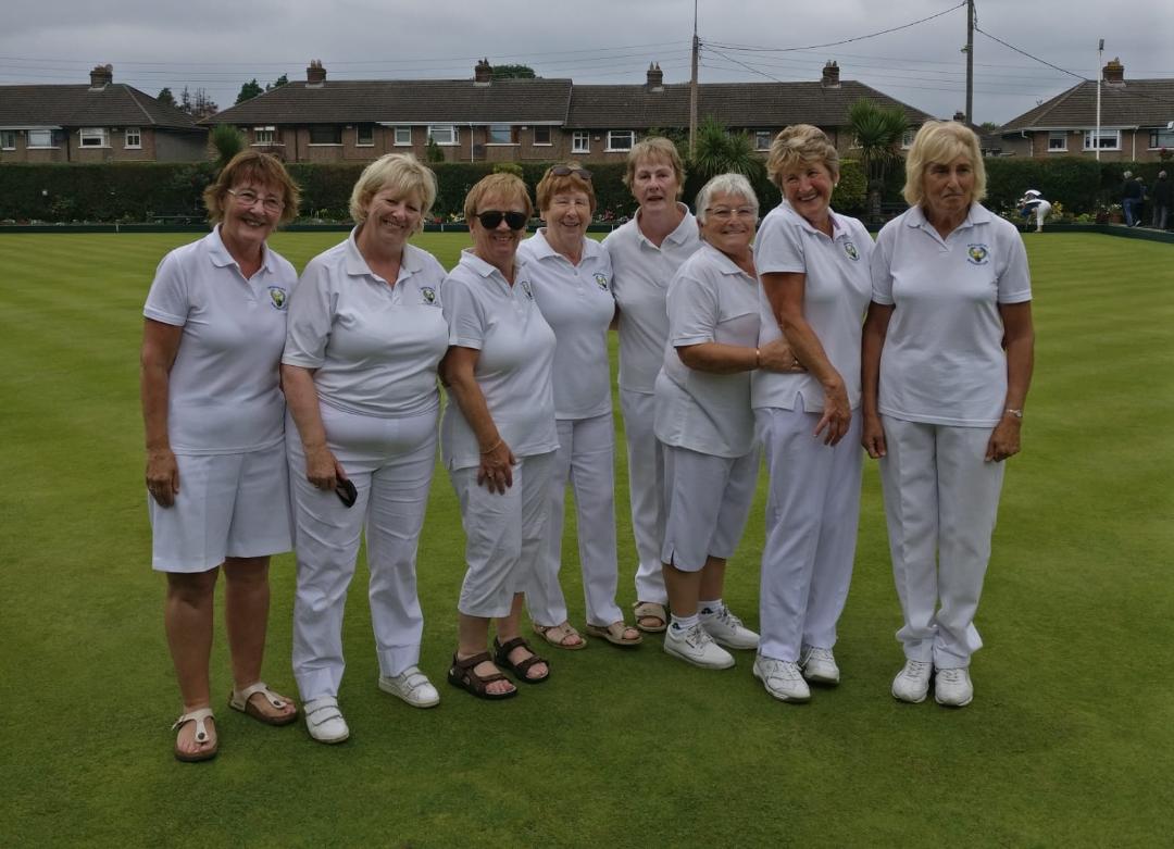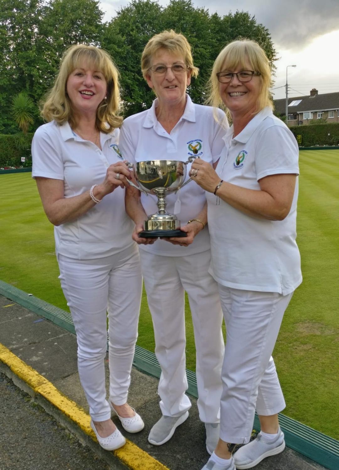 Westmanstown’s team were successful winning the Junior trophy. Sheila Harte, Mary Brophy, Caroline Blake pictured below, overcame a stiff challenge from Skerries to win the match.